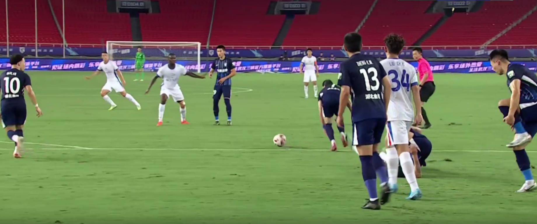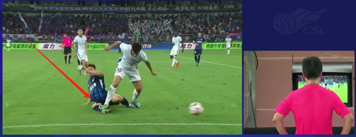 第40分钟,申花再度逃过一劫,这次是一张红牌,上海申花外援特谢拉在一次争抢中,用脚踩中了三镇球员的小腿,虽然不是故意的,但是这个动作如果给红牌的话,完全没有任何问题,但裁判在看完VAR后还是选择给一张黄牌了事。对此,裁判员得到了武汉球迷的质疑。