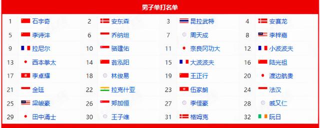 另外世锦赛黑马,加拿大小将赖浩俊目前处在替补第4位,参赛机会较为渺茫。法汉近期活跃于高级别赛事,而国羽新星胡哲安仍在低级别赛事中历练,期待他能早日崭露头角,取得优异成绩。
